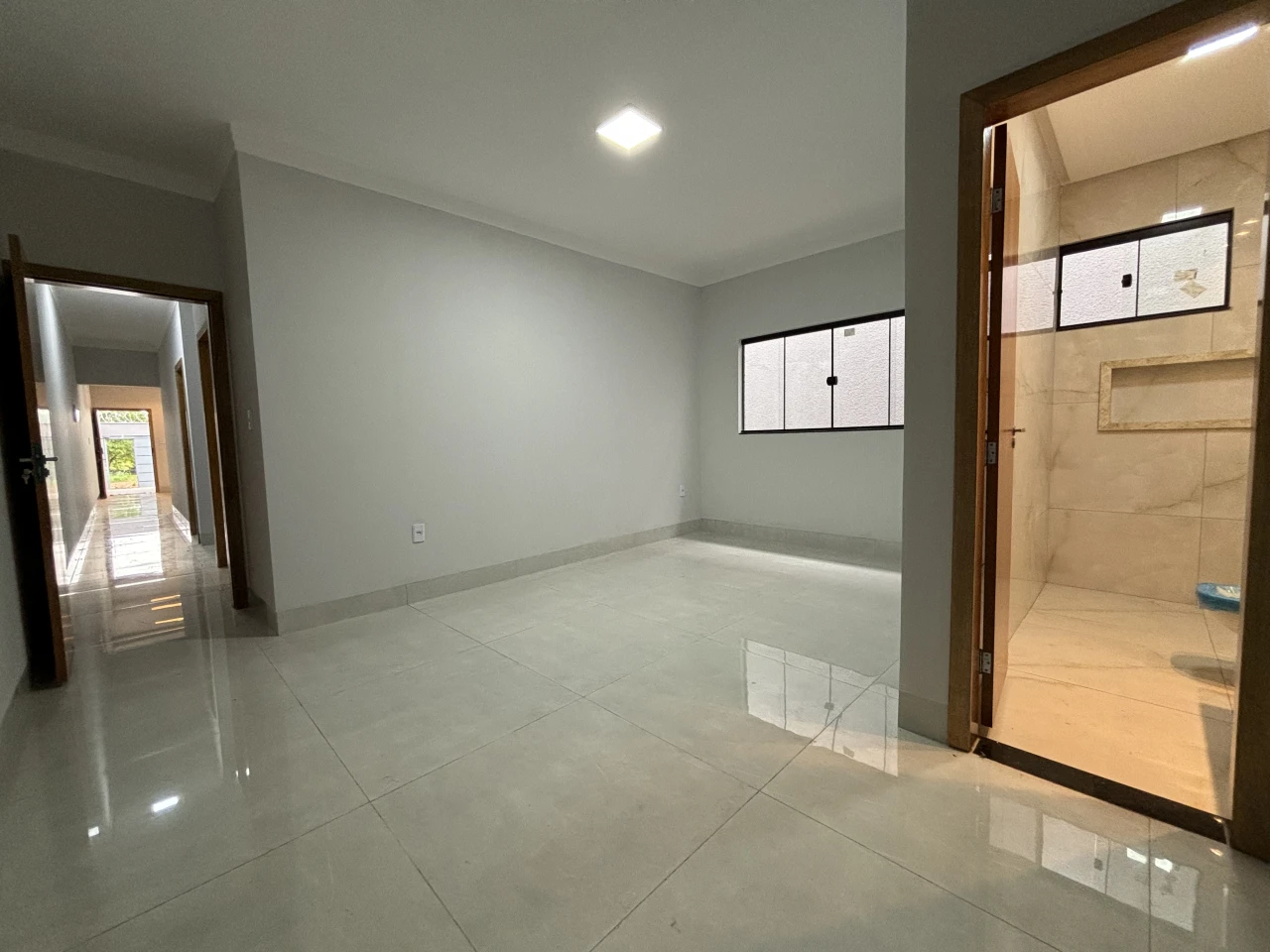 Casa com área na frente com espaço para 2 carros , acabamento prêmio bancada da cozinha e granito porcelanato, suíte com muito espaço e duas suítes am