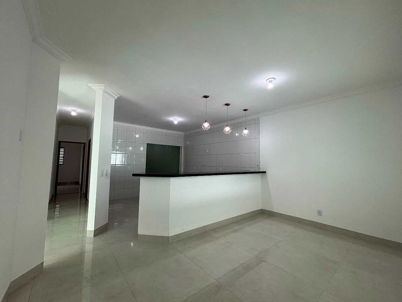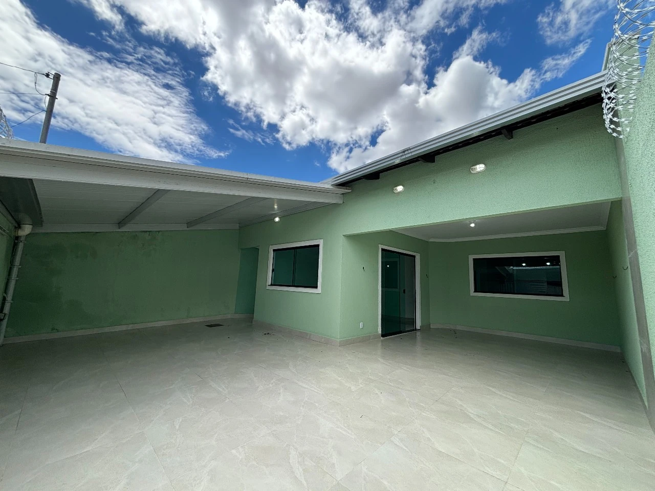 Espaço para 4 carros acabamento no porcelanato.área gourmet com churrasqueira.