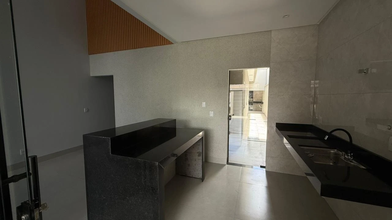 - Diferenciais: Casa com excelente acabamento, suíte ampla, sala com pé direito duplo, iluminação LED amadeirado e pintura com cristais , cozinha integrada com a sala, ilha na cor preto São Gabriel , área gourmet com churrasqueira, bancada na cor preto São Gabriel, lavabo, ótimo acabamento no grafiato cristais , iluminação LED , fachada imponente e diferenciada, cerca elétrica com 6 fios, espaço no quintal.